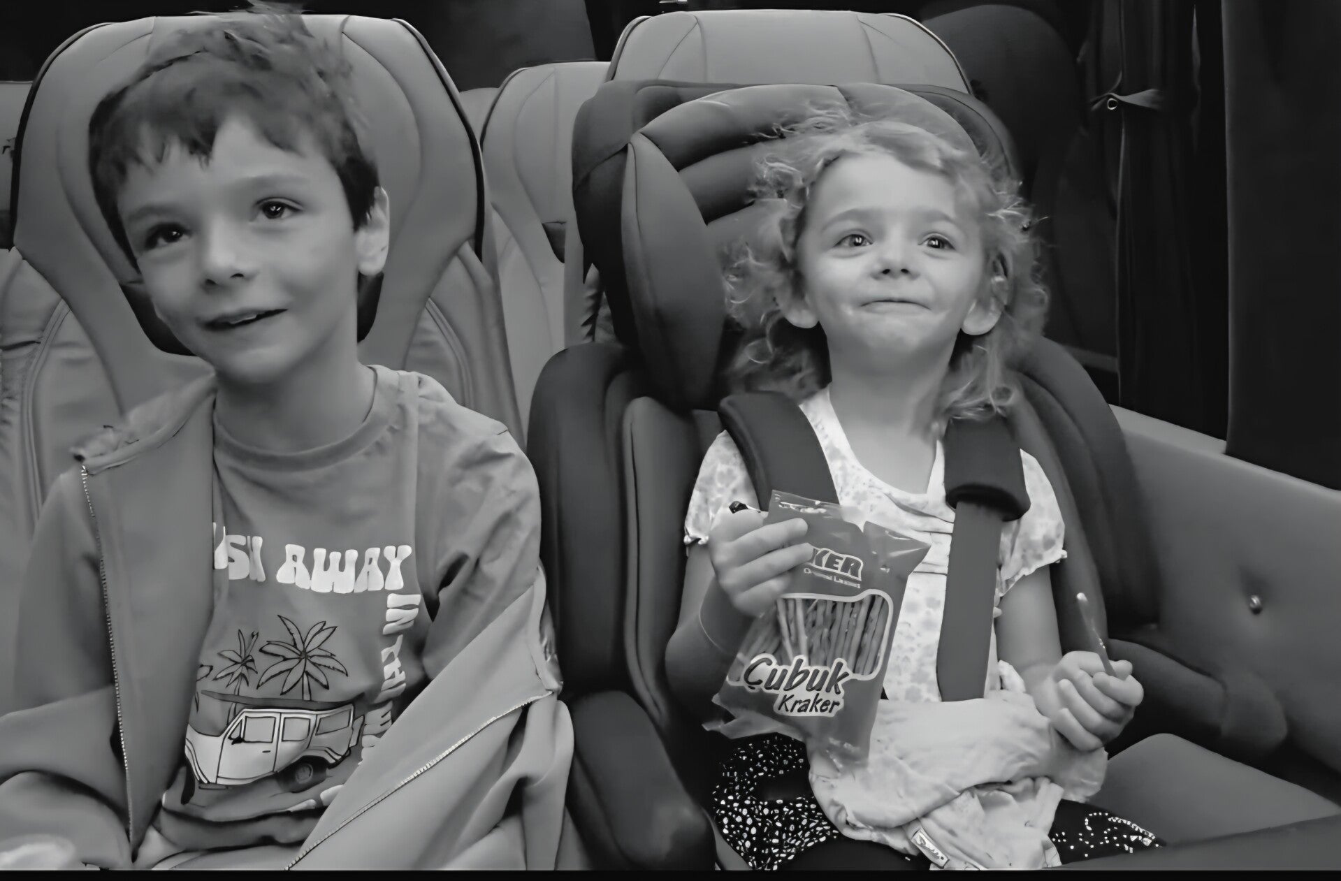 Sillas infantiles, snacks y bebidas a bordo.